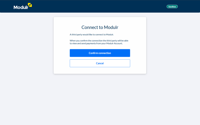 You will be redirected to the Modulr Sign-In screen. Sign In to your Modulr Account.